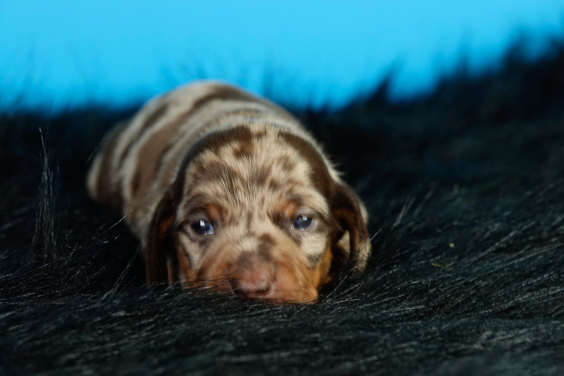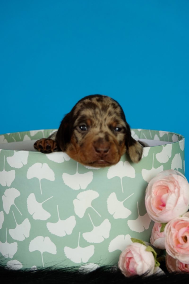 Op 28 maart 2024 heeft onze dwergteckel Lizelot 3 pups gekregen, waaronder een getijgerde! Helemaal geweldig!!!! De vader van de pups is getijgerd vandaar.