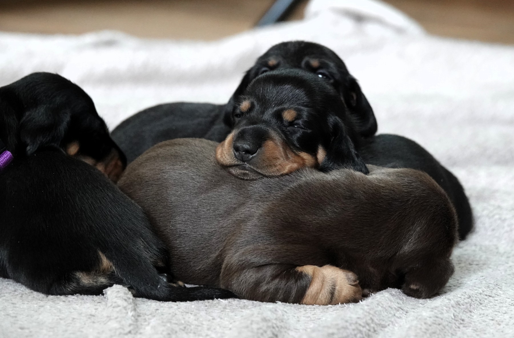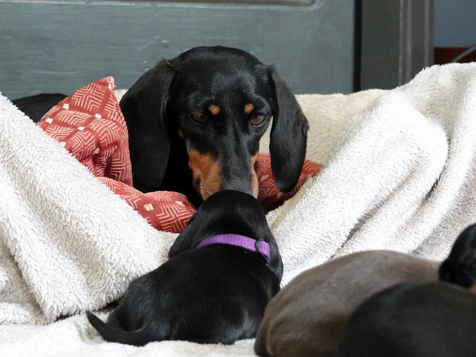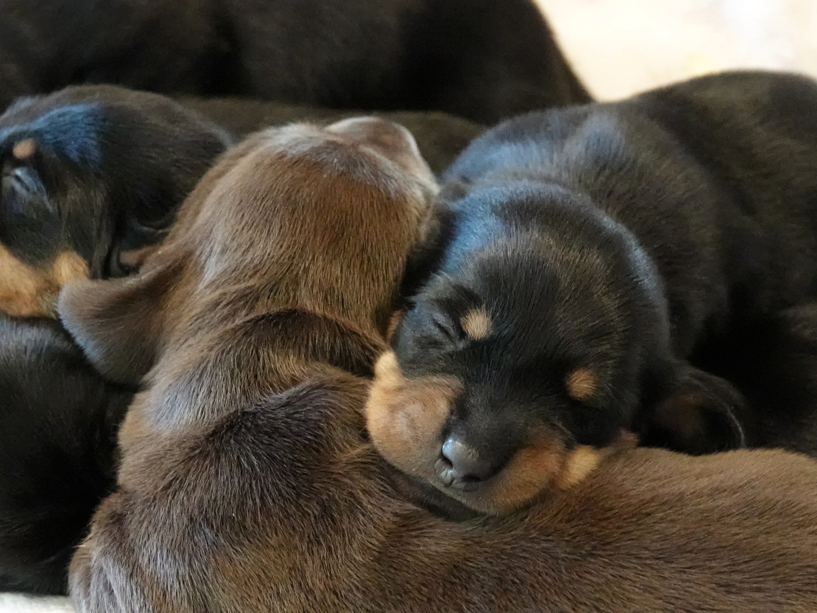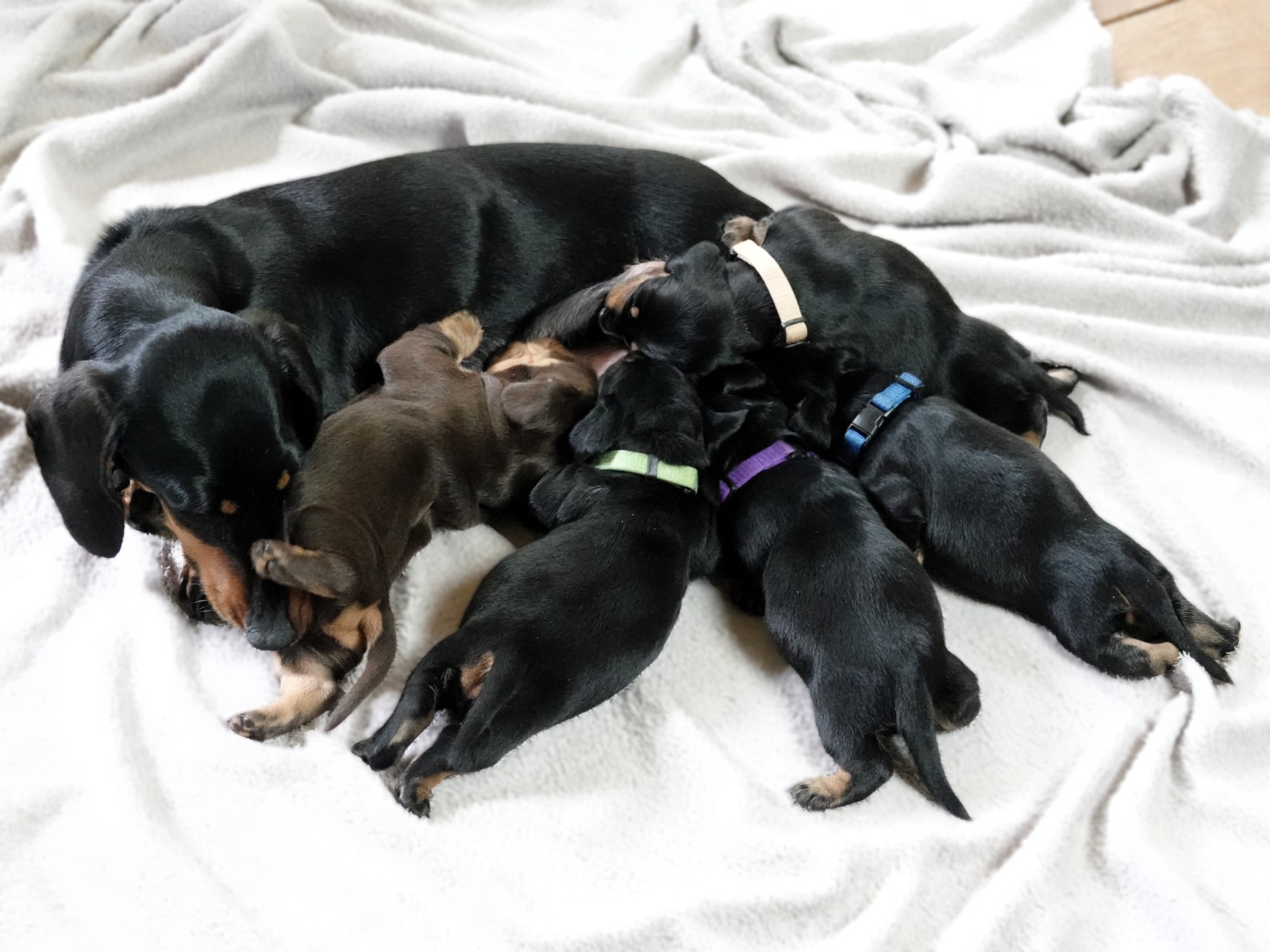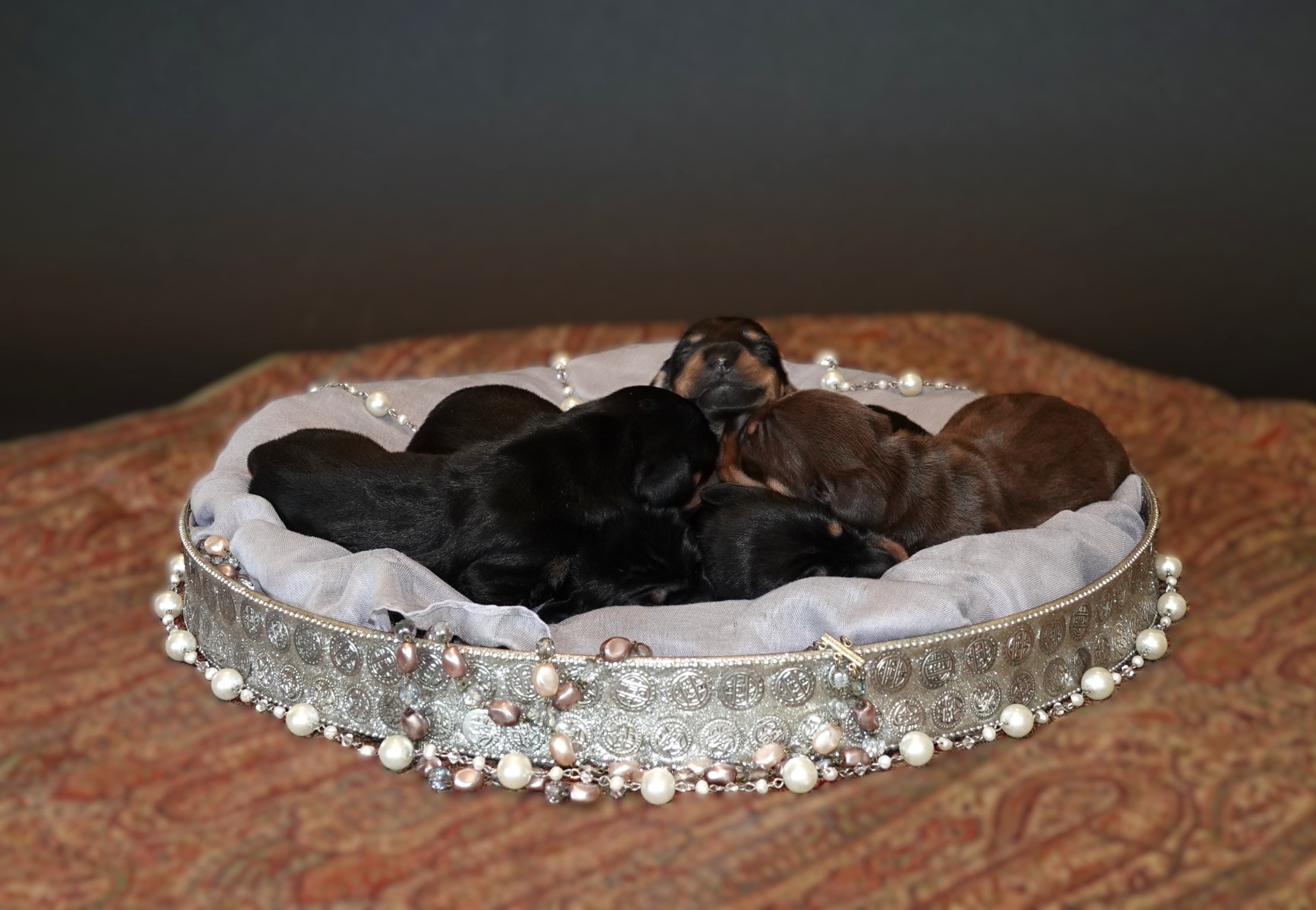 Wat een feestje op 7 mei 2025. Tussen 18 en 20 uur zijn er 5 pupjes bij Lizelot geboren. De vader is het chocoreutje Victum uit ’t Voortse Huys, vandaar dat we 1 chocoteefje hebben. De 4 teefjes en het ene reutje maken het super goed. Ze groeien als kool en Lizelot is een geweldige moeder, die haar kids beschermt!