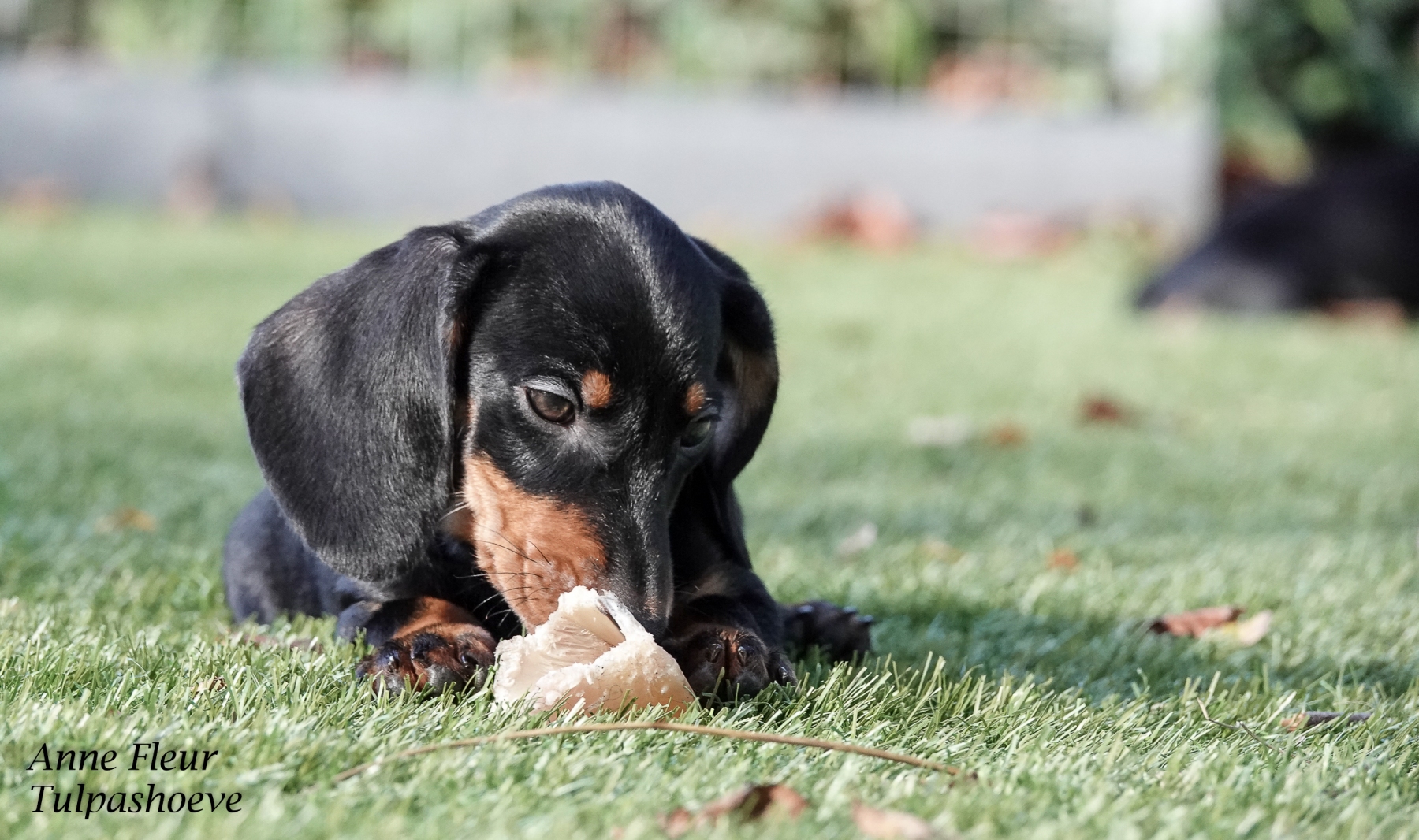 Afgelopen zondag hebben we bij Lammy Hamelink, een gerenommeerd teckelfokker, een standaard teckeltje opgehaald. Haar officiële naam is Mouna van de Mibafshoeve, maar wij noemen haar Anne Fleur.