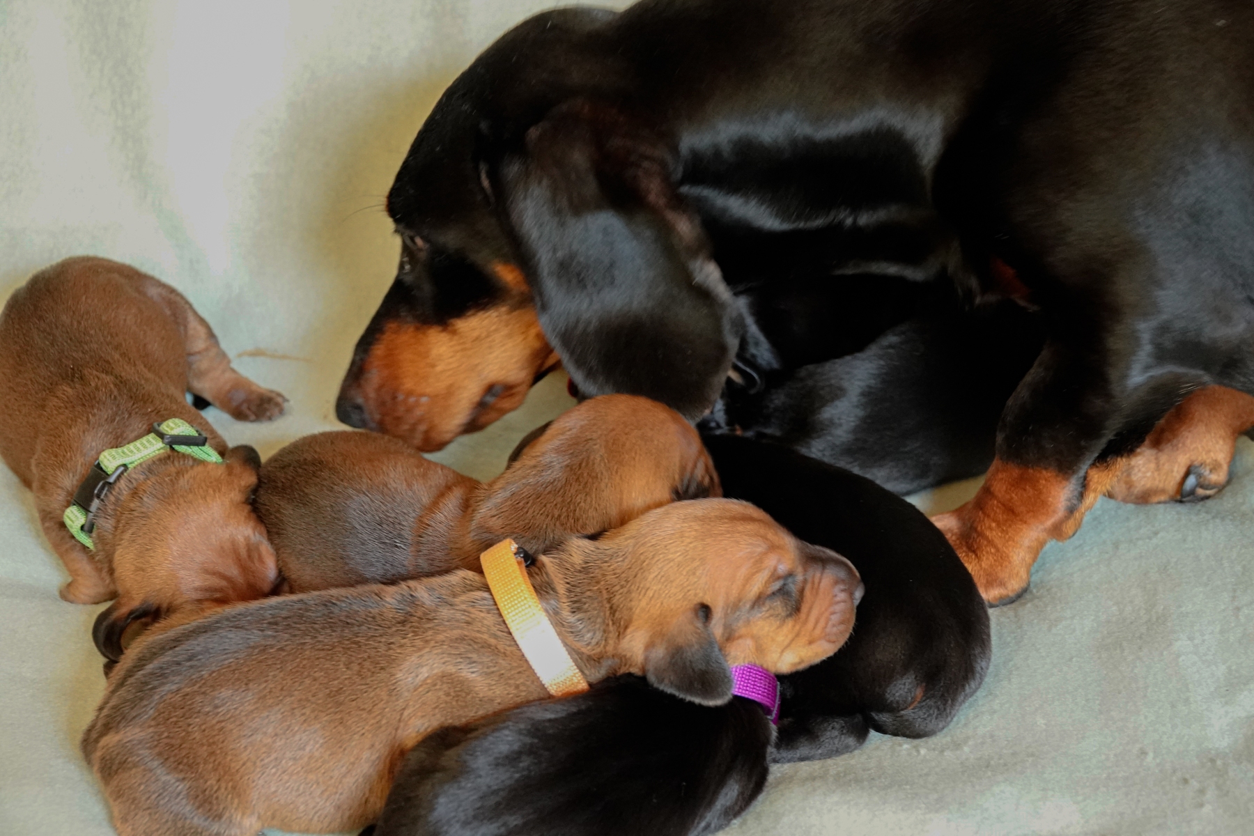 Wat ben ik trots op onze lieve ondeugende innemende Anne Fleur. In de nacht van 4 op 5 augustus was er een zeer voorspoedige bevalling van 7 pups (5 reutjes en 2 teefjes). Tussen 23.35 uur en 3.45 uur was het nestje geboren. Ze deed alles zelf, we hoefden haar nergens mee te helpen. Wat een toppertje!