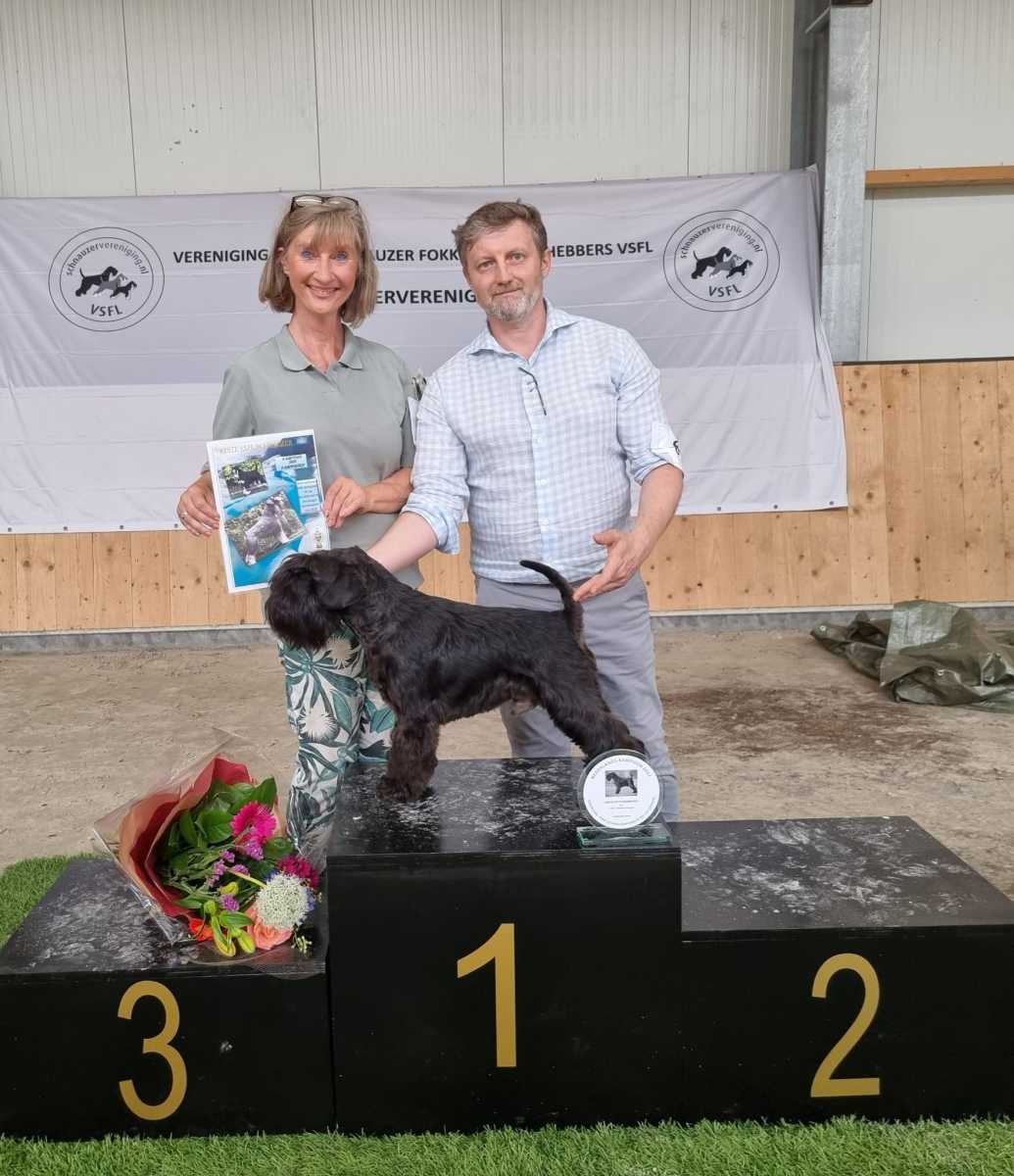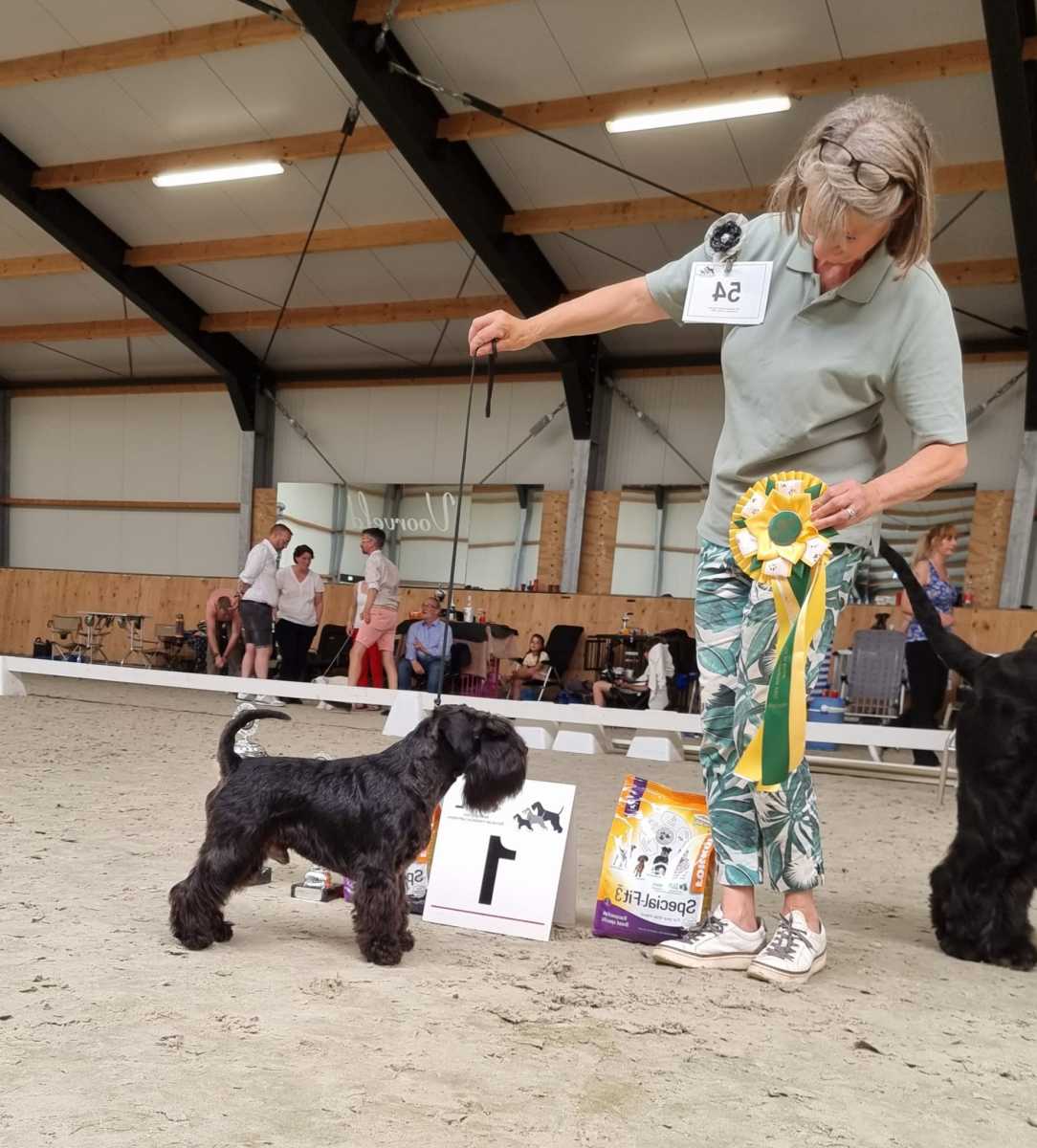 Op 11 juni 2023 was de Kampioensclubmatch van de Schnauzervereniging. Er waren 19 zwarte dwergschnauzers en 86 schnauzers in totaal ingeschreven in alle variëteiten. Carin had Remsey heel netjes getrimd en de fokker Andrey Shmal van Remsey was heel blij.