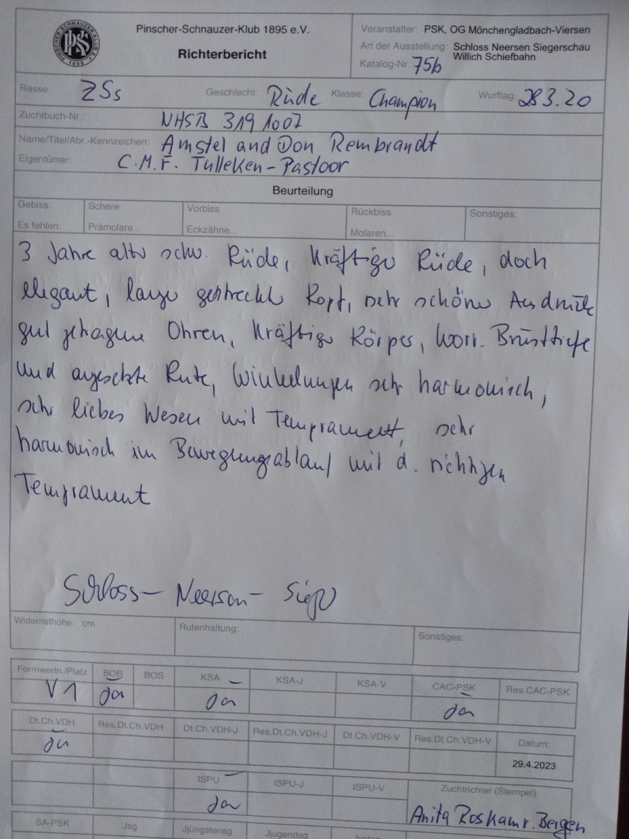 Op 29 april 2023 zijn we naar de PSK OG Mönchengladbach-Viersen geweest samen met Remsey. Er was sterke concurrentie, maar Remsey werd weer de Beste van het Ras (BOB)! Er waren weer gezellige mensen en het weer was prachtig! Carin was er natuurlijk ook weer bij en het was weer top!