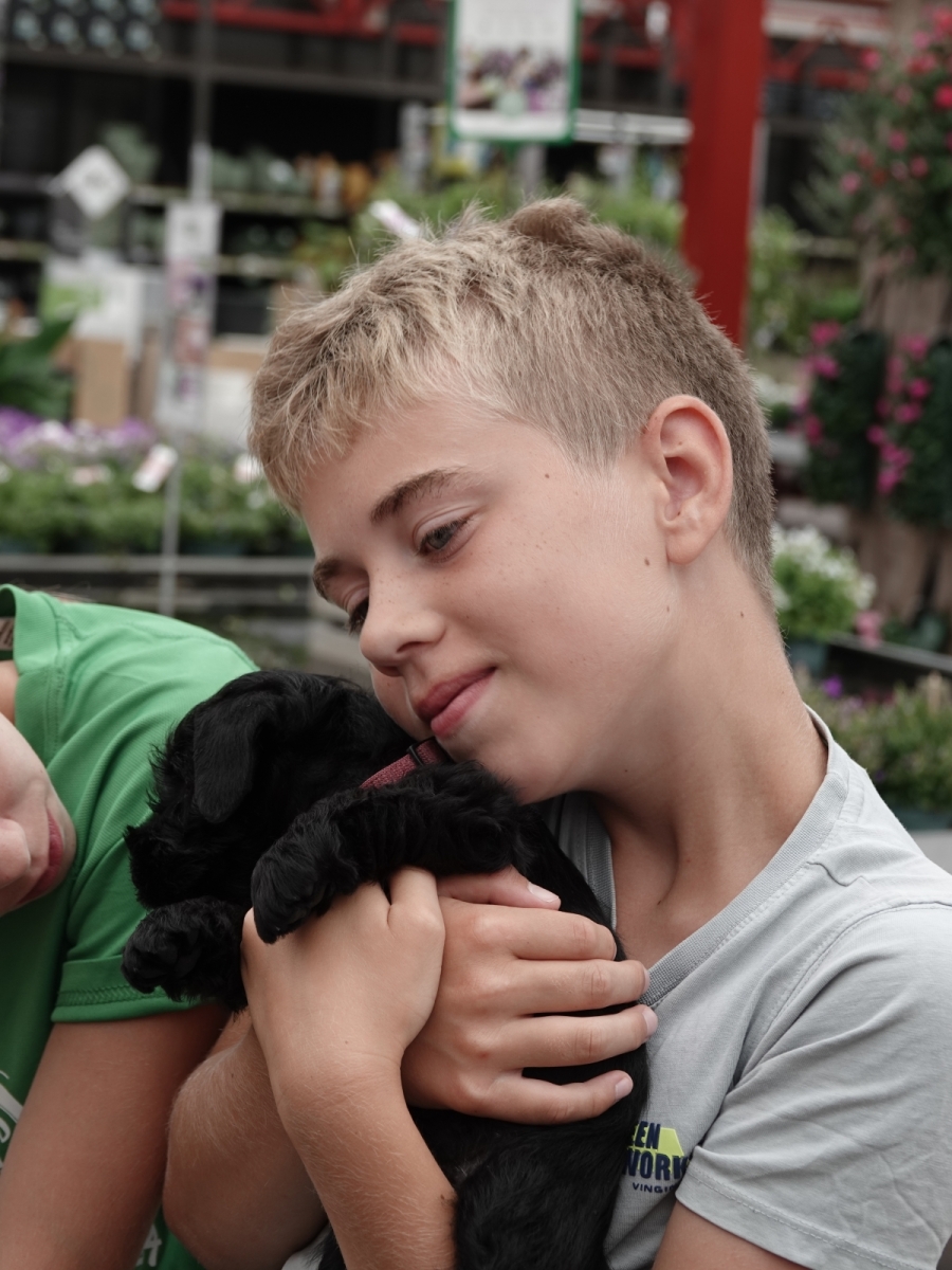 De pups zijn natuurlijk weer naar het tuincentrum geweest voor het socialiseren, maar ook om leuke foto’s te maken. We zijn 2 keer naar het ouderencentrum geweest. Dit blijft dierbaar voor de mensen. Het zijn momentopnames voor de mensen en ze genieten daar volop van. Kijk nog even naar de leuke foto’s van het tuincentrum!